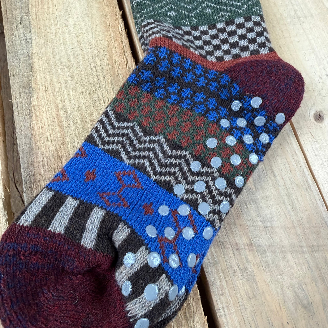 Non-slip silicone grippers on the bottom provide extra stability on wooden and hard floors, making them perfect for cozy days at home. Finished in rich, Nordic-inspired colors, these socks are warm, breathable, durable—and designed to keep you steady and comfortable all winter long.